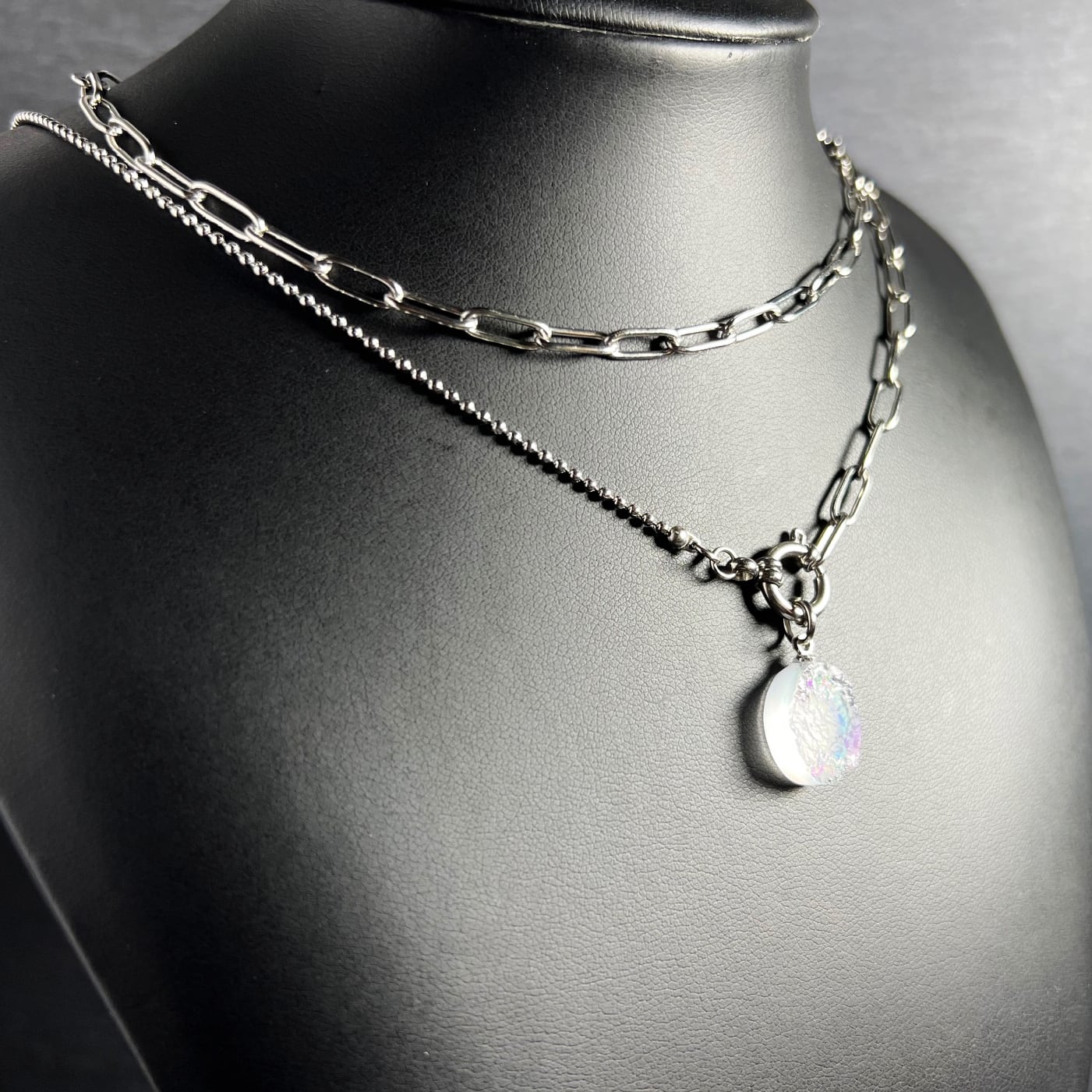 首周りを自由にチェーンで着飾れるロングネックレスです。