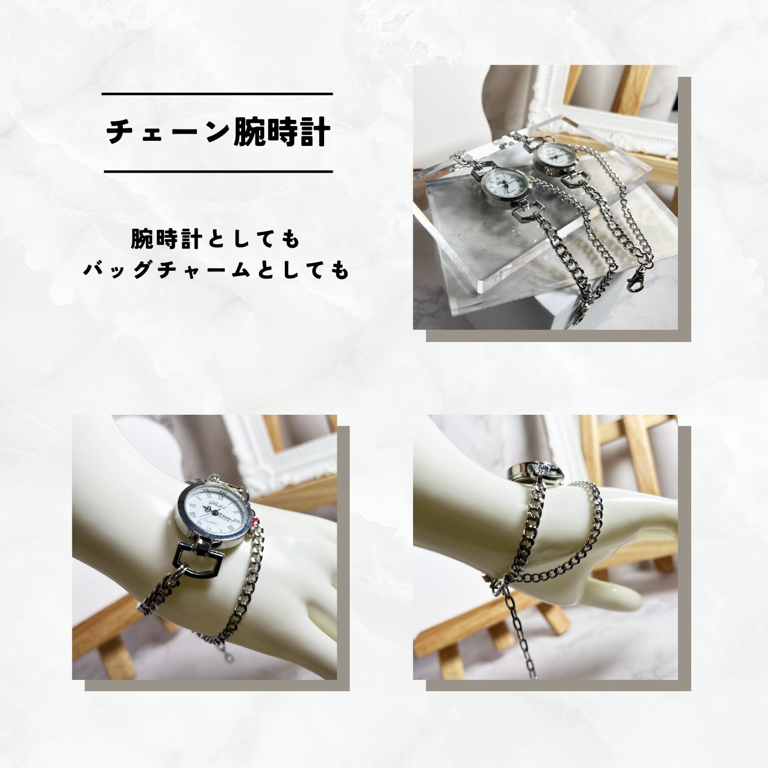 バッグチャームとしても使える、チェーン型の時計ブレスレットです。