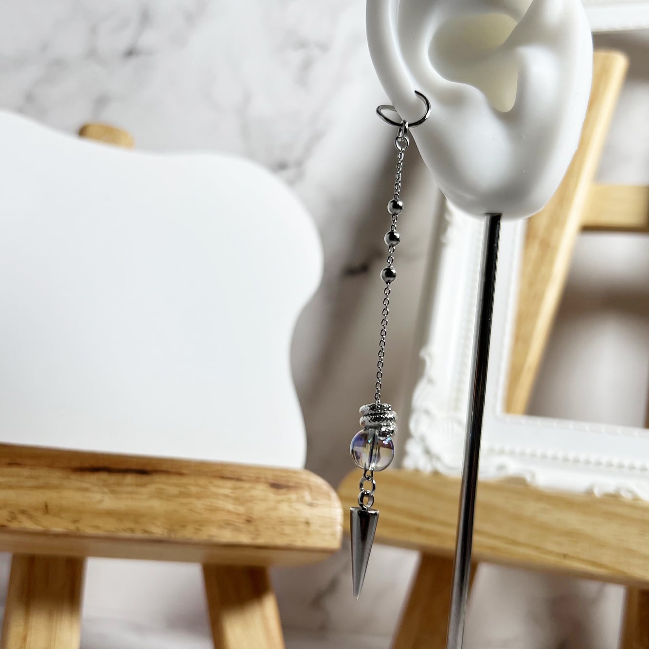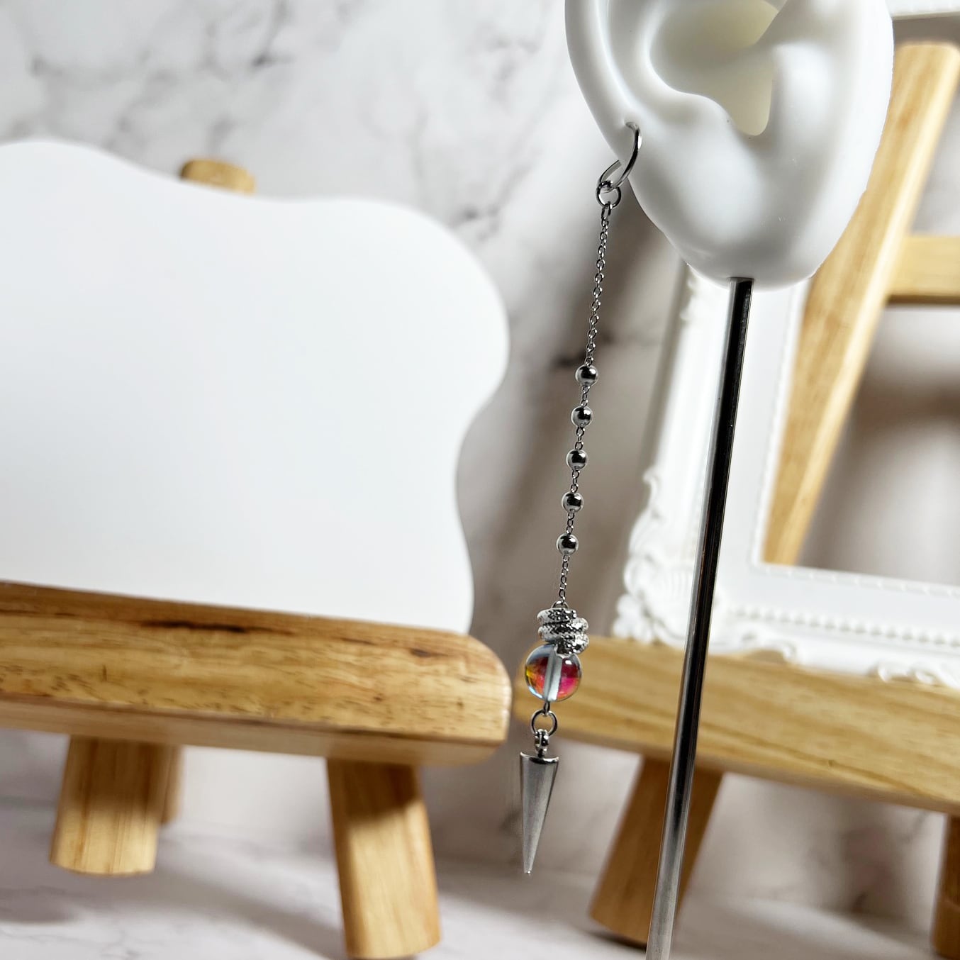 ゆらゆらと揺れるチェーンと、天然石ビーズ、鎮座する蛇を楽しむ耳飾りです。